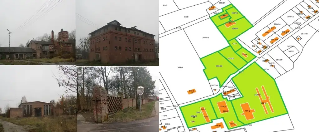Działka 357/23 o pow. 0,1241 ha zabudowana obiektami nie będącymi w ewidencji zabytków: