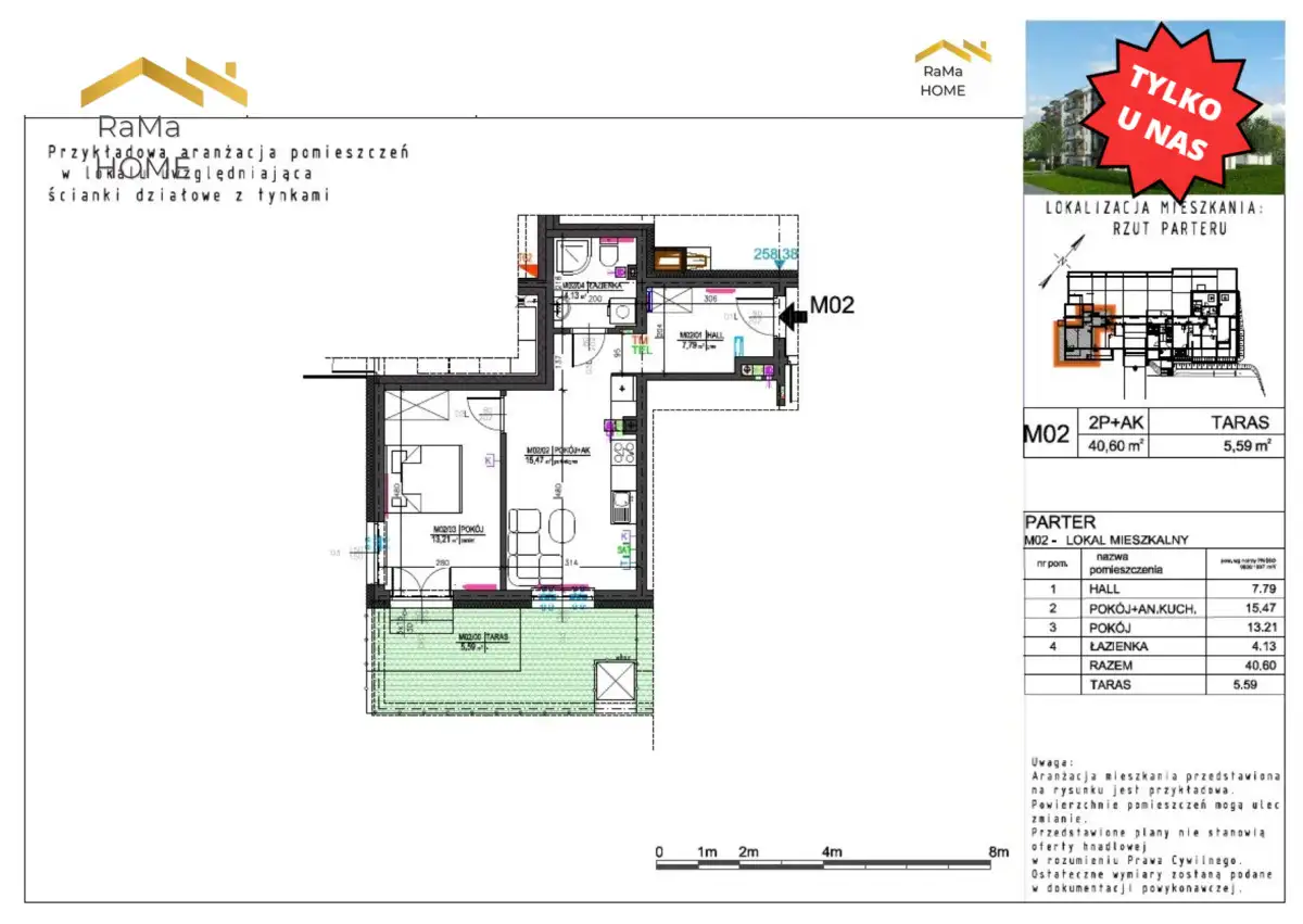 Parametry mieszkania:• powierzchnia: 40,60 m²,