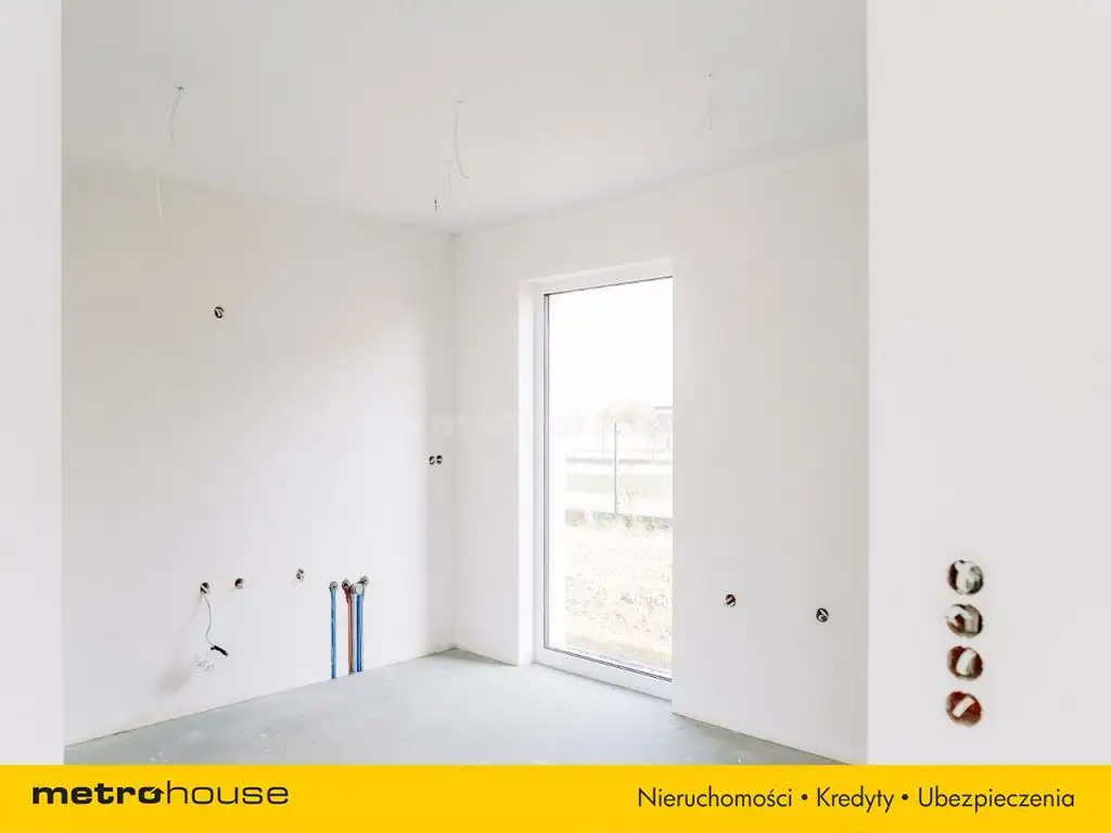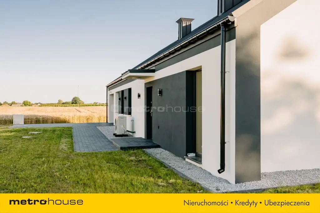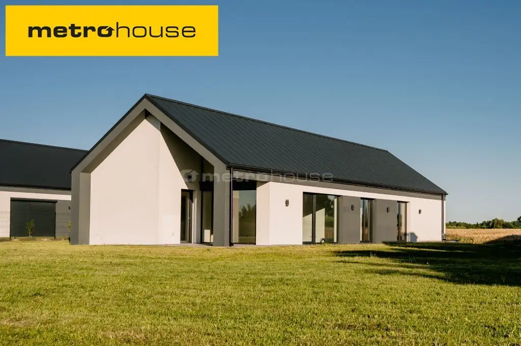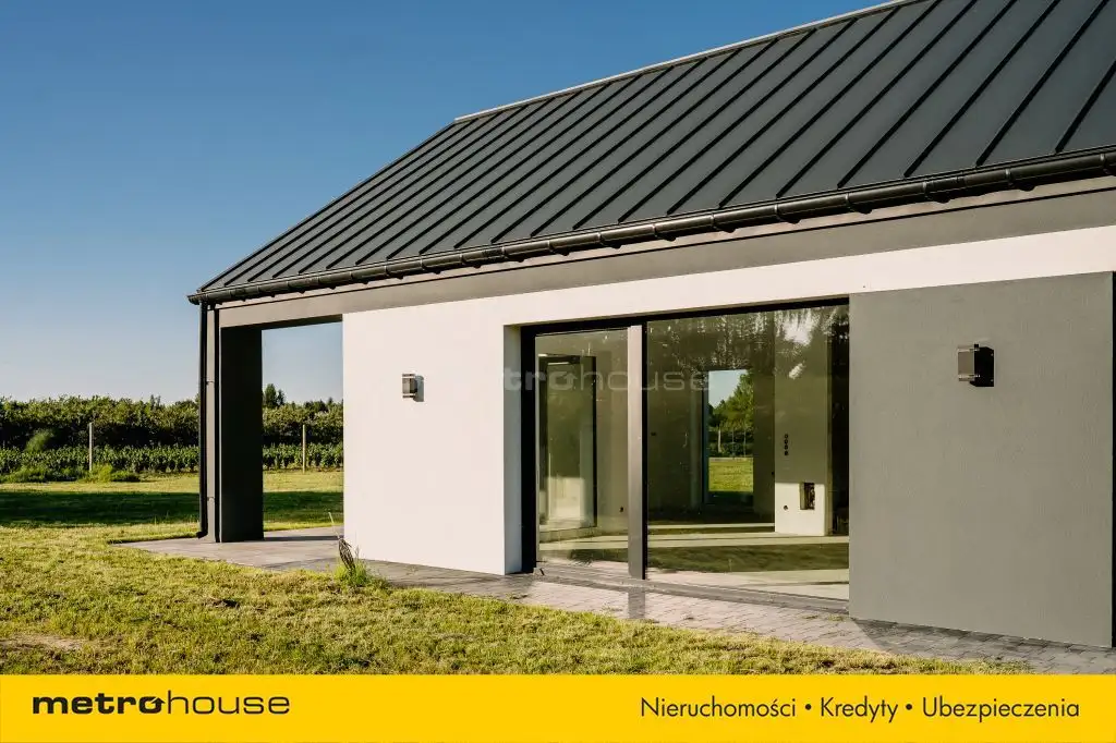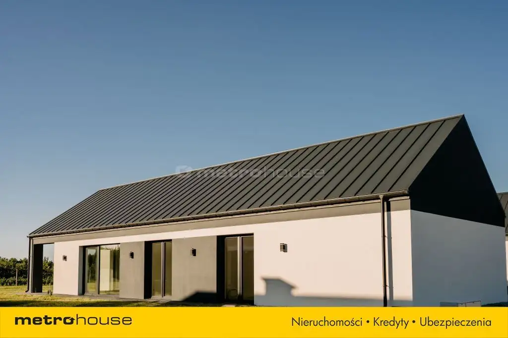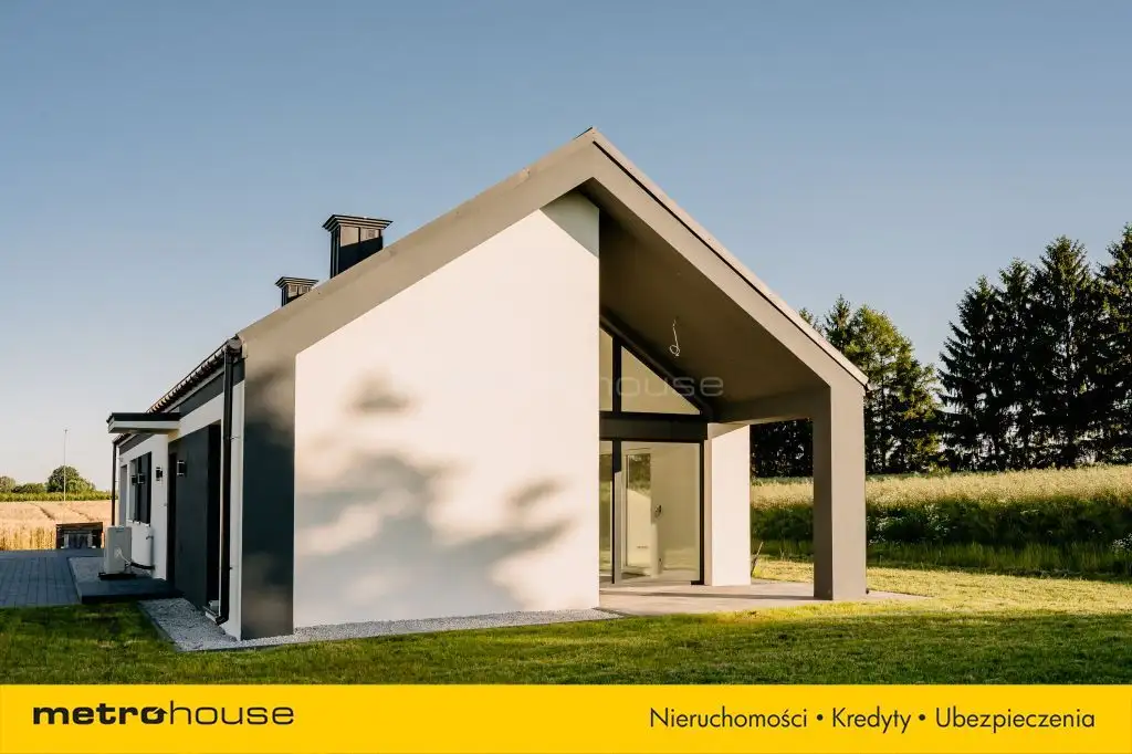 Wnętrze domu zaprojektowane zostało z najwyższą starannością, oferując przyszłym właścicielom trzy przytulne sypialnie, przestronny salon z kominkiem, funkcjonalną kuchnię ze spiżarnią oraz dwie łazienki. Dodatkowo, z myślą o codziennej wygodzie, w domu znajduje się praktyczne pomieszczenie gospodarcze oraz garaż. Jednym z wyjątkowych atutów tej nieruchomości jest innowacyjny system drzwi przesuwanych oraz imponujące przeszklenia, które zapewniają mnóstwo naturalnego światła. Dopełnieniem tego intrygującego projektu jest przestronny taras, doskonały do odpoczynku w otoczeniu natury. Zewnętrzne elewacyjne lampy pięknie oświetlają dom, tworząc magiczną atmosferę po zmroku. Dom został zaprojektowany z najwyższą starannością, a jego precyzyjne wykonanie to gwarancja satysfakcji na lata.
