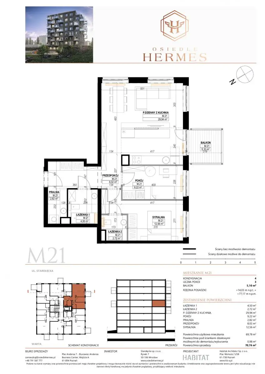 Mieszkanie 72,7 m² na sprzedaż - Wieża Jeżyce, Nowe Jeżyce, PoznańNa sprzedaż przestronne mieszkanie 3-pokojowe w nowoczesnym osiedlu Wieża Jeżyce...