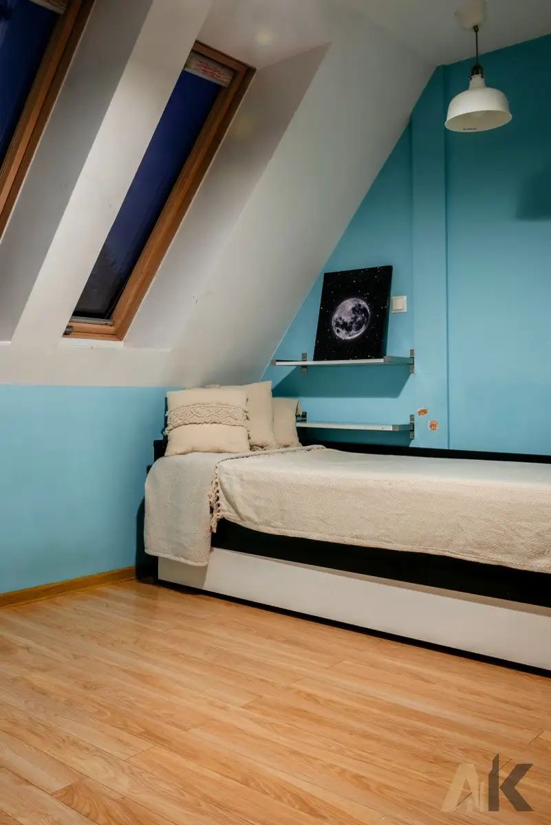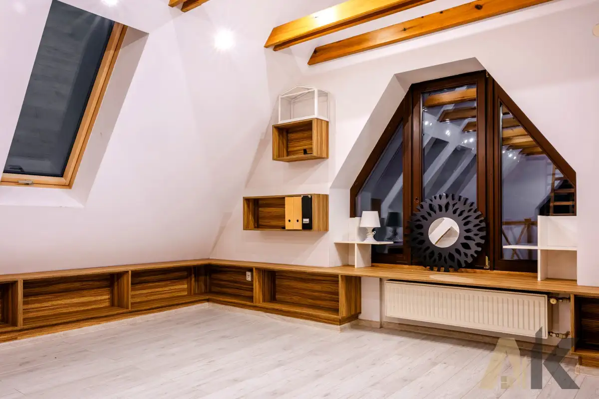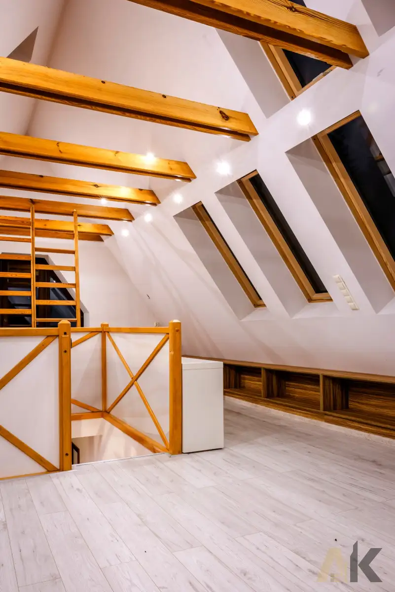 Poddasze tworzy dużą przestrzeń do stworzenia miejsca odpoczynku, sali telewizyjnej lub miejsca zabaw dla dzieci.