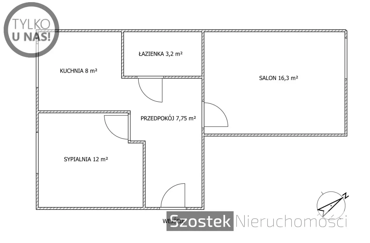 INFORMACJE OGÓLNEMieszkanie o powierzchni 47,25 m², znajdujące się na 1 piętrze kameralnego, ocieplonego, trzypiętrowego budynku. Układ pomieszczeń obejmuje salon, sypialnię, osobną kuchnię z oknem, łazienkę oraz przedpokój. Ekspozycja okien na południowy zachód oraz północny wschód.