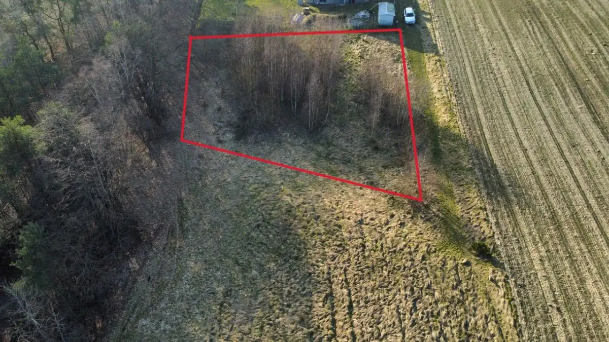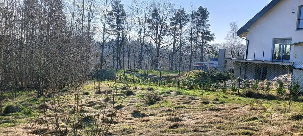 Działka pięknie położona, z nachyleniem, okolica cicha i spokojna.
