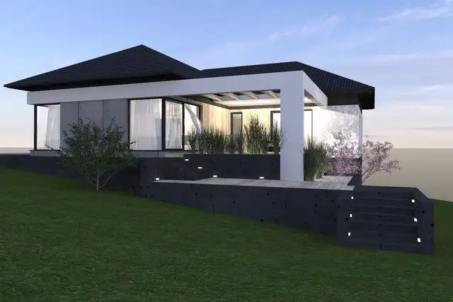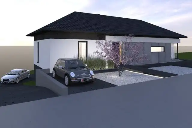 Właściciel do działki przygotował indywidualny projekt domu typu bungalow z dużą piwnicą i garażem na 3 auta (koszt projektu: 26 000 zł). Możliwość wznowienia pozwolenia na budowę lub dostosowania dokumentacji pod własne potrzeby.