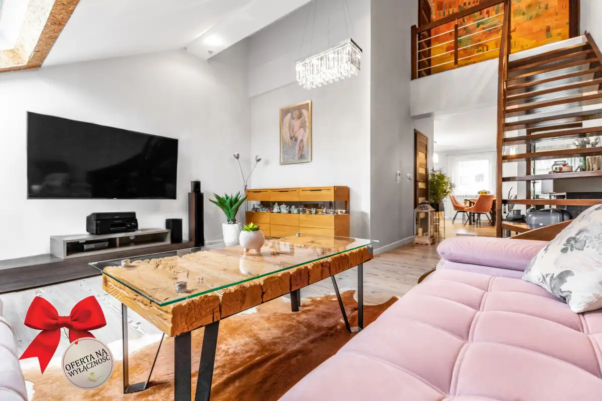 Dwupoziomowe mieszkanie o pow. 106,35m² zlokalizowane na trzecim piętrze w bloku z windą przy ulicy T. Strzembosza w Lublinie.