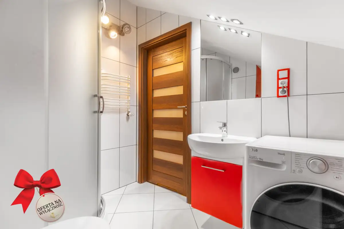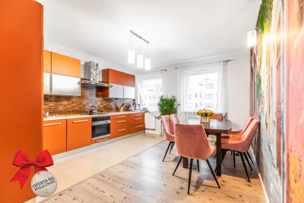 - Wyposażenie: zabudowa kuchenna, sprzęt AGD, zabudowa stała