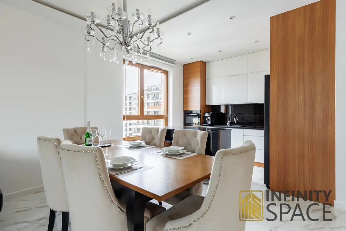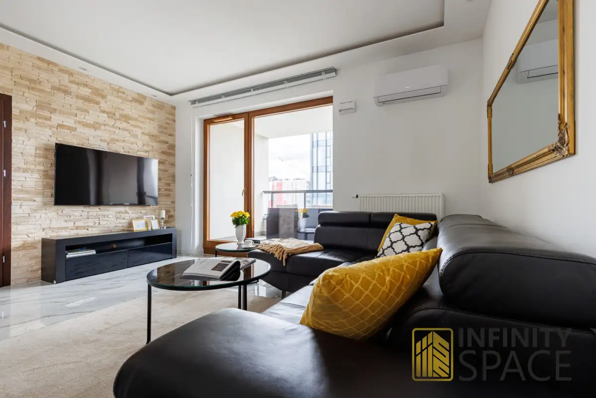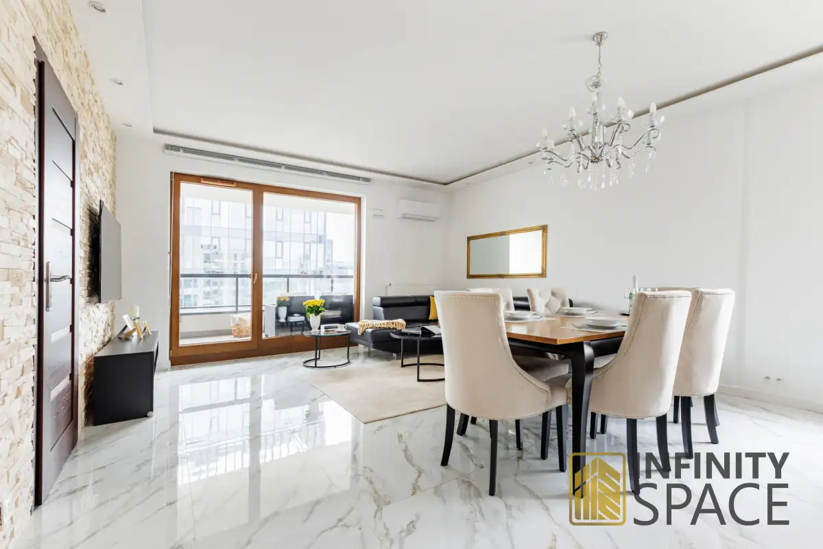 Zainteresowany? Zadzwoń lub zostaw wiadomość!Adam Wojdyła+48 577 511 856[Email protected]----------------------ENGLISH-------------------------PREMIUM APARTMENT 75 m² | 2 BEDROOMS | 2 BATHROOMS | MOKOTÓW | UNDERGROUND GARAGE | AIR CONDITIONING | LARGE LOGGIAAPARTMENTThis new, comfortable, modern, and fully equipped PREMIUM apartment in the "Pozytywny Mokotów" development, with an area of 75 m², is located on the fifth floor of a seven-story building with an elevator. Its southwest exposure and large, bright windows guarantee plenty of natural light. The apartment was designed by an interior designer and finished to a very high standard using the highest quality materials: wood, stone, marble, and glass. The apartment is very quiet thanks to the use of sound-insulating triple-glazed windows. The apartment is equipped with high-end modern appliances, including a refrigerator with an ice maker and water dispenser, an espresso machine, a dinner set, and cookware. It features an exceptionally functional layout, consisting of two bedrooms, two bathrooms, and a large loggia. It has air conditioning (in both the living room and both bedrooms) and two large Smart TVs.