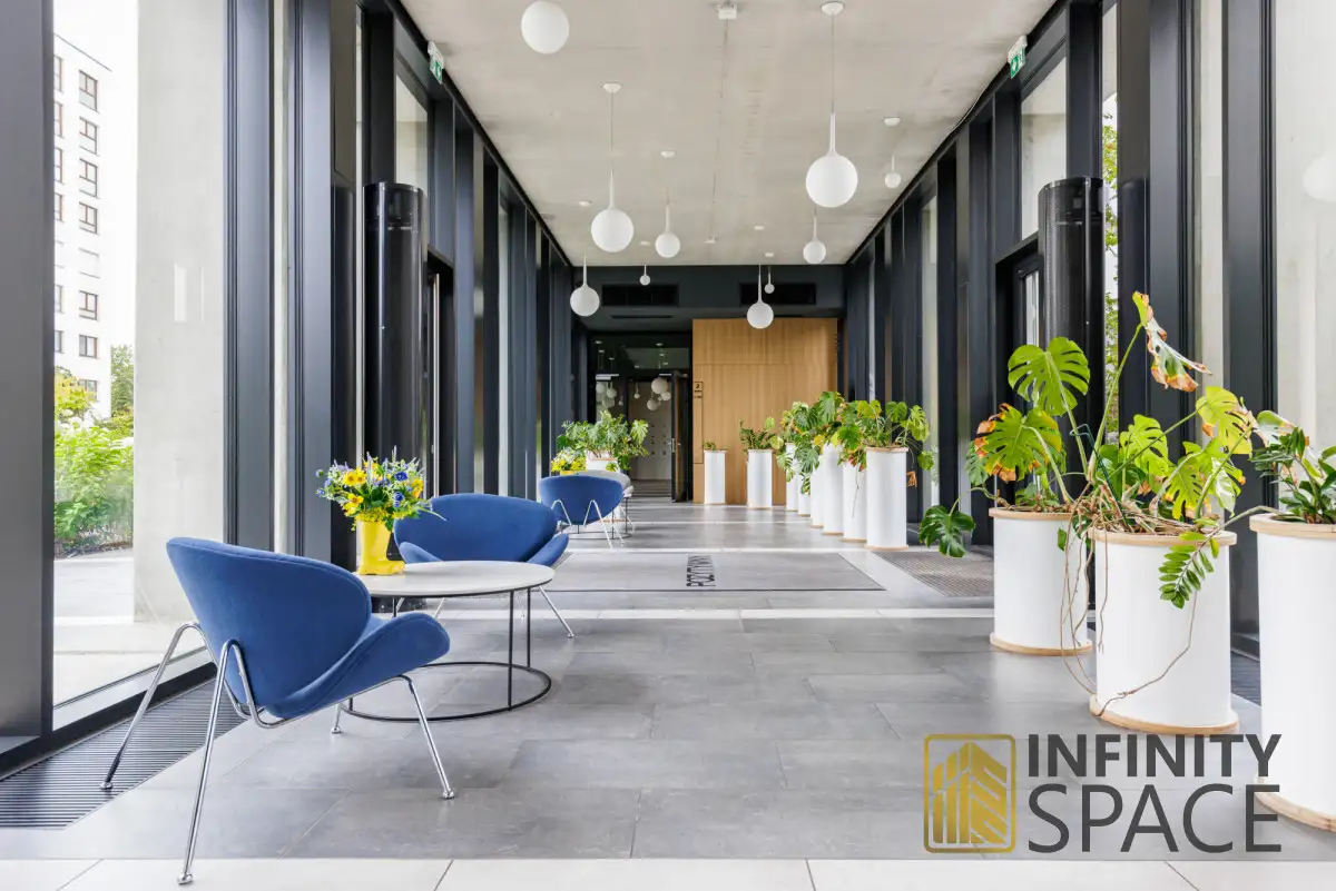 The proximity of Chopin Airport (approx. 10 minutes by car) and major thoroughfares (Marynarska, Wołoska, and Puławska Streets) makes this location exceptionally convenient for frequent business travelers.