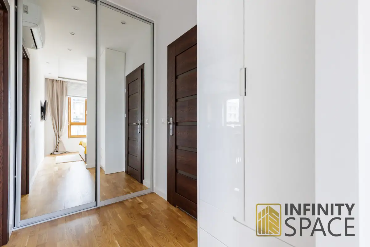 BUILDINGThis 2021 building is located in a modern development surrounded by greenery and low-rise buildings (7 stories). It has an underground garage, monitoring, 24-hour security and an elevator. The stairwells are neat and well-maintained. The development boasts a large internal garden with playgrounds and relaxation areas. The apartments in this prestigious location are examples of modern architecture and exclusive finishes.