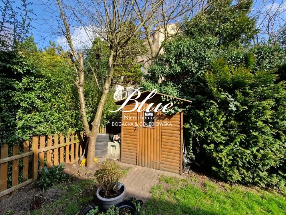 Do mieszkania przynależy ogród o powierzchni ok. 200m² z tarasem i domkiem narzędziowym.