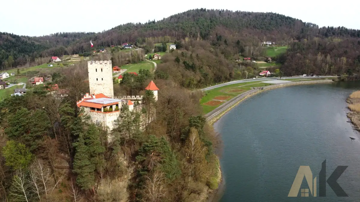 Z działki rozciąga się widok na Jezioro Rożnowskie, pagórki, lasy