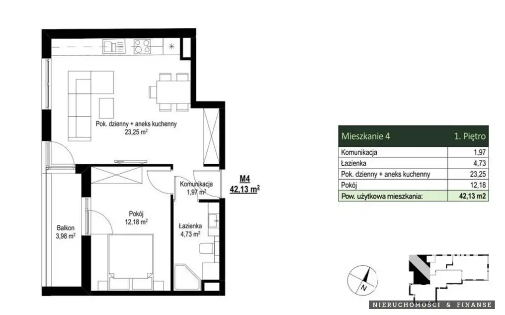3,98 m²) - doskonałe miejsce na poranną kawę lub odpoczynek po pracy.