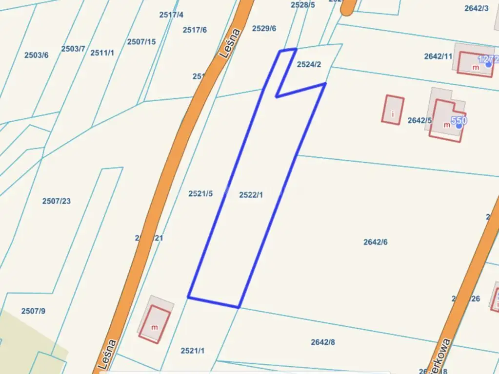 Dojazd: wydzielona droga dojazdowa o szerokości 5 m, widoczna w Miejscowym Planie Zagospodarowania Przestrzennego.