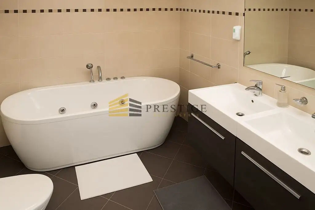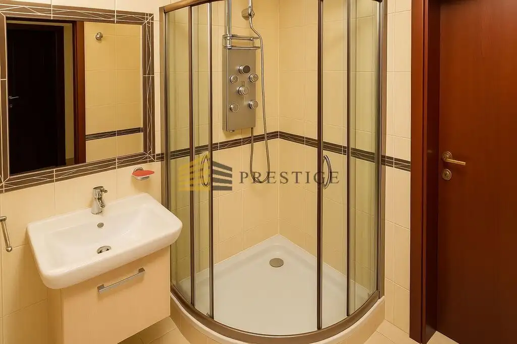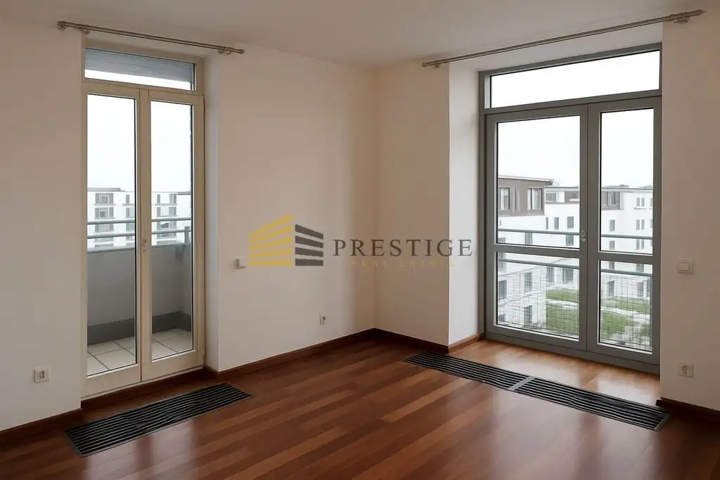 The apartment is elegantly finished and currently unfurnished, allowing for flexible arrangement according to the tenant's needs. Extensive glazing makes the interiors bright and full of natural light.