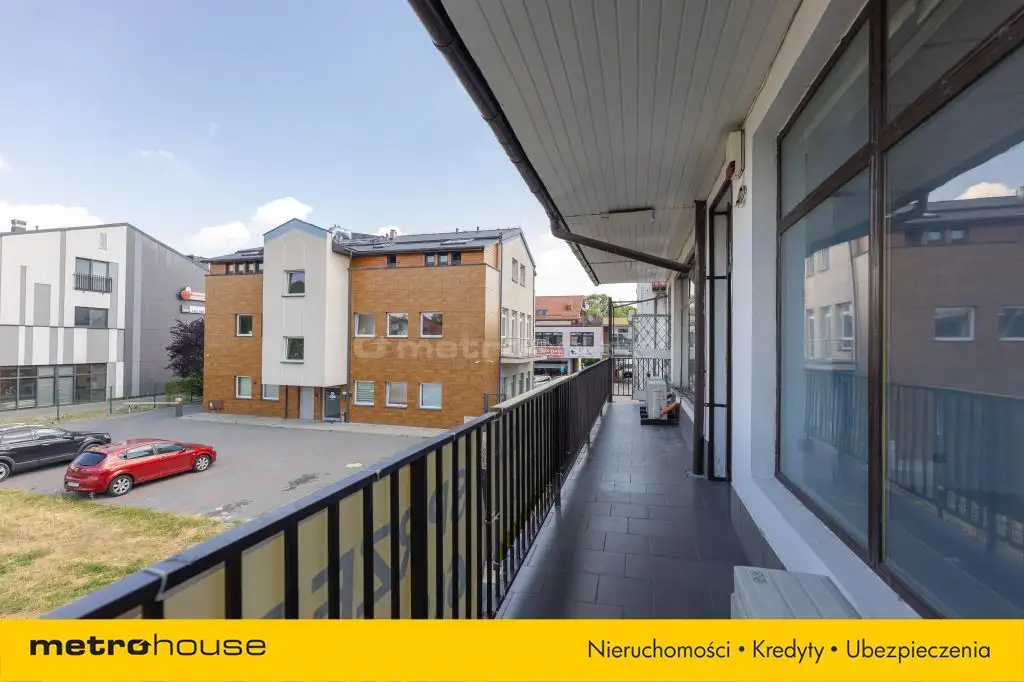 I piętro przestronne pomieszczenie z dużym balkonem, idealne na biuro, gabinet lub salę konferencyjną.
