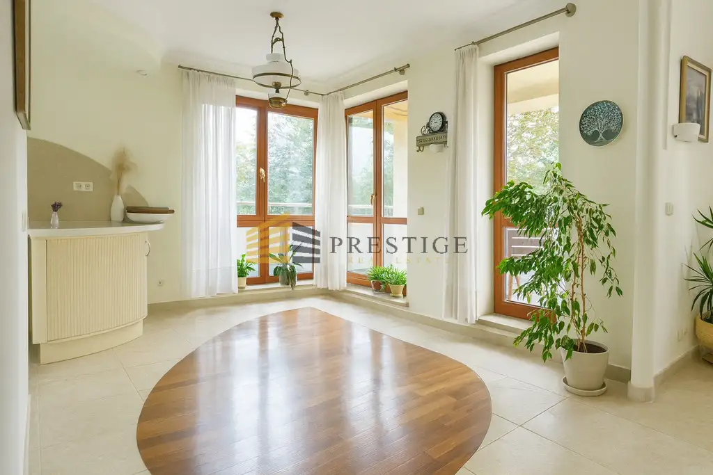 A comfortable apartment for rent in a prestigious part of Old Wilanów. Located on the first floor of a cozy, two-story Mediterranean-style building, the apartment is surrounded by elegant single-family homes and lush greenery, ensuring peace and privacy.