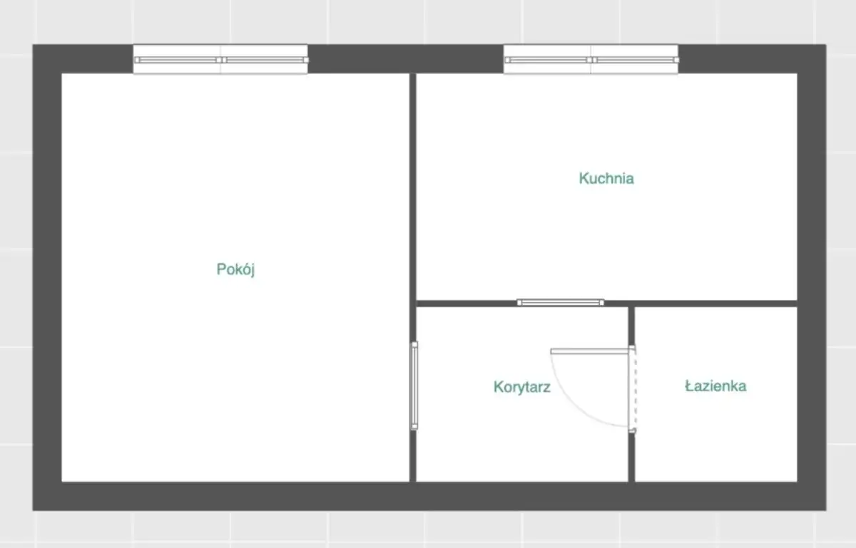 Lokal o powierzchni 32,76 m² to obecnie przestronna i bardzo ustawna kawalerka. Jego największym atutem jest układ, który bez problemu pozwala na wydzielenie oddzielnej, jasnej sypialni, tworząc w ten sposób w pełni funkcjonalne mieszkanie 2-pokojowe. To idealna opcja, by niskim kosztem zyskać dodatkowy pokój i znacząco podnieść wartość nieruchomości.