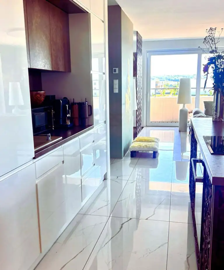 Wnętrze apartamantu zostało wykończone w najwyższym standardzie z dbałością o każdy szczegół i przy użyciu materiałów klasy premium.