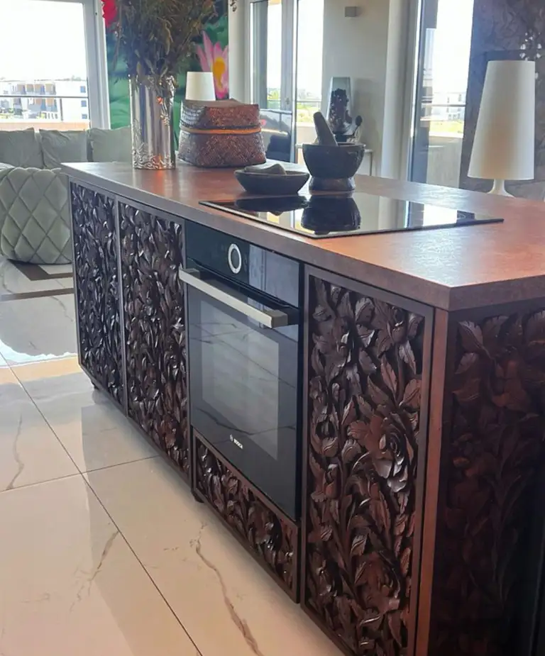 Zapraszamy do poznania niezwykłego apartamentu o powierzchni 79m² położonego w nowoczesnym budynku z 2021 roku. To miejsce, które łączy w sobie luksus, funkcjonalność i niepowtarzalny klimat. Już od progu uwagę przykuwa centralny punkt wnętrza - unikatowa wyspa kuchenna, rzeźbiona w drzewie tekowym, sprowadzona na zamówienie z Tajlandii. To nie tylko mebel, ale prawdziwe dzieło sztuki, wokół którego koncentruje się życie domowe i towarzyskie. Wyspa pełni rolę serca apartamentu - raz staje się eleganckim bufetem, innym razem stołem gromadzącym rodzinę i przyjaciół.