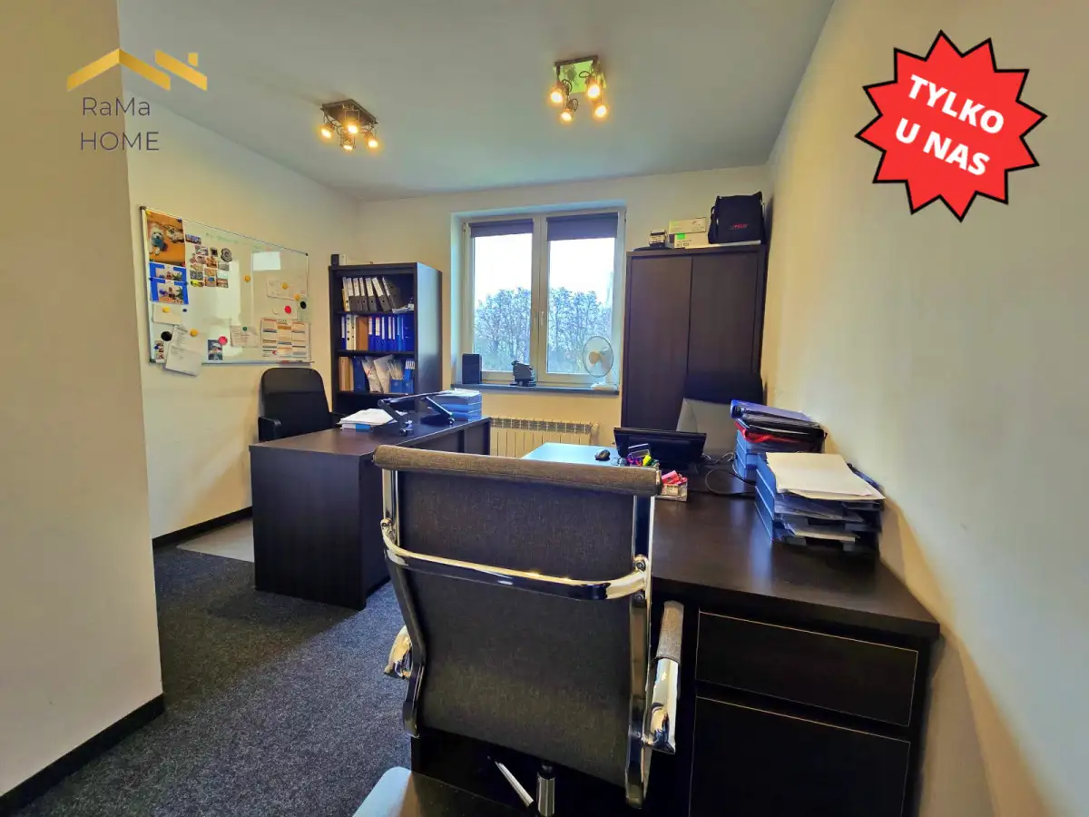 Przy domu stoi duży, dwustanowiskowy (ok. 50m²) garaż oraz biuro (ok. 18m²) z węzłem sanitarnym do którego prowadzi zewnętrzne wejście. To świetna propozycja dla osób prowadzących działalność gospodarczą i pragnących pracować w domu ale w zewnętrznym biurze.