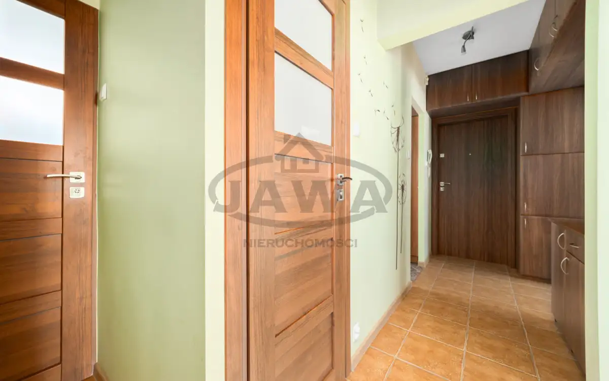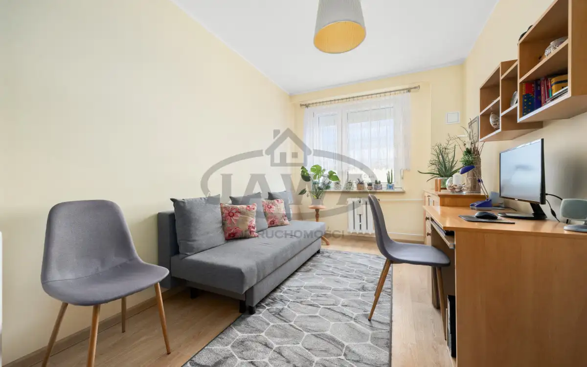Mieszkanie składa się salonu z balkonem, dwóch osobnych sypialni, łazienki, toalety i kuchni. Salon z balkonem oraz jedna z sypialni są usytuowane od strony południowego zachodu, kuchnia, łazienka oraz druga sypialnia mają ekspozycje na północny wschód. Dbając o swój komfort, właściciele od strony zachodniej zamontowali zewnętrzne rolety okienne. Na podłodze w korytarzu, kuchni, łazience oraz toalecie położone są płytki. W dwóch sypialniach oraz w salonie na podłodze są panele podłogowe w bardzo dobrym stanie. W całym mieszkaniu na ścianach są gładzie. Wszystkie okna w mieszkaniu są oknami PCV i nie wymagają wymiany. Kuchnia wyposażona jest piekarnik, lodówkę, płytę gazową, okap. Wszystkie wymienione sprzęty AGD są w cenie mieszkania. W łazience na wyposażeniu jest pralka, którą również przy zakupie przejmie nowy właściciel. MIeszkanie jest bardzo czyste i zadbane. Można wejść i odrazu zamieszkać, jednak jeśli zechcesz dostosować je do swojego stylu - nie będzie wymagało to dużego nakładu środków.
