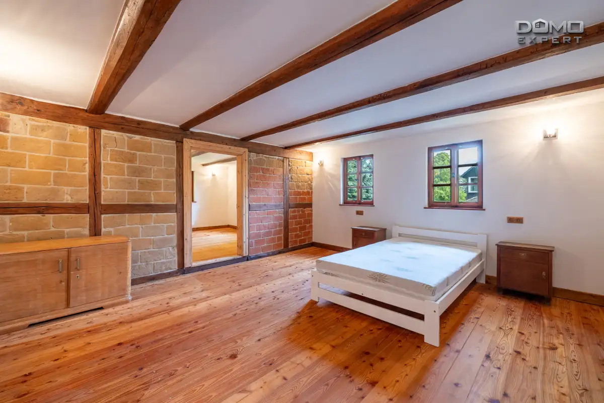 , zabudowana budynkiem mieszkalnym o powierzchni 172 m² z użytkowym poddaszem oraz budynkiem gospodarczym. Idealna propozycja dla osób szukających spokoju, przestrzeni i wyjątkowego klimatu z dala od miejskiego zgiełku.