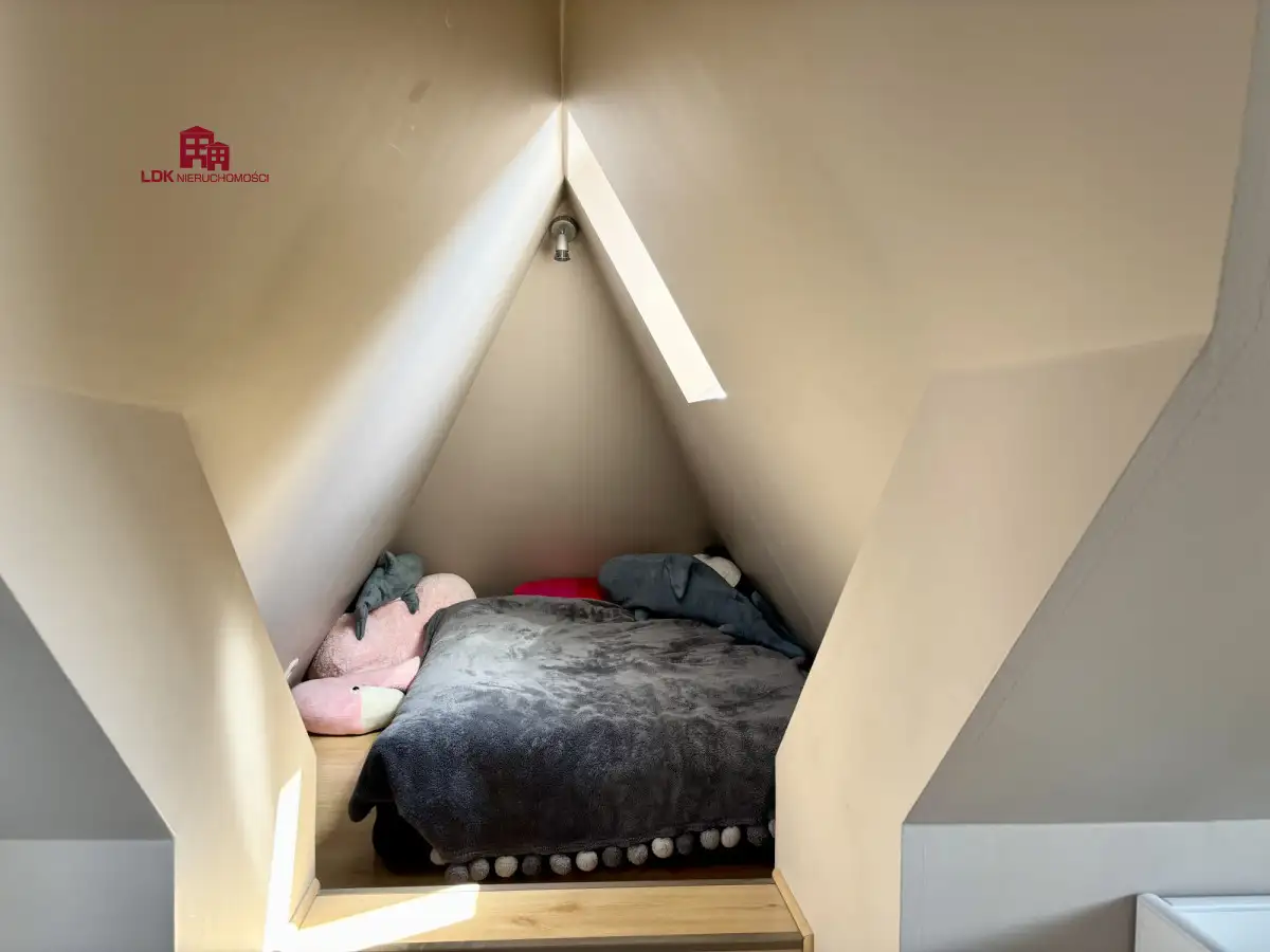 Rozkład pomieszczeń: • Parter: przestronny, jasny salon z otwartą kuchnią po remoncie, łazienka oraz wyjście na duży taras z widokiem na ogród. • I piętro: 3 wygodne sypialnie oraz łazienka z wanną - strefa relaksu i prywatności. • Poddasze użytkowe: klimatyczna przestrzeń, którą możesz urządzić jako domowe biuro, strefę nastolatka lub pracownię artystyczną. • Poziom -1: garaż, piwnica, kotłownia, pomieszczenie gospodarcze i WC - wszystko, czego potrzebujesz, by utrzymać porządek i funkcjonalność domu.