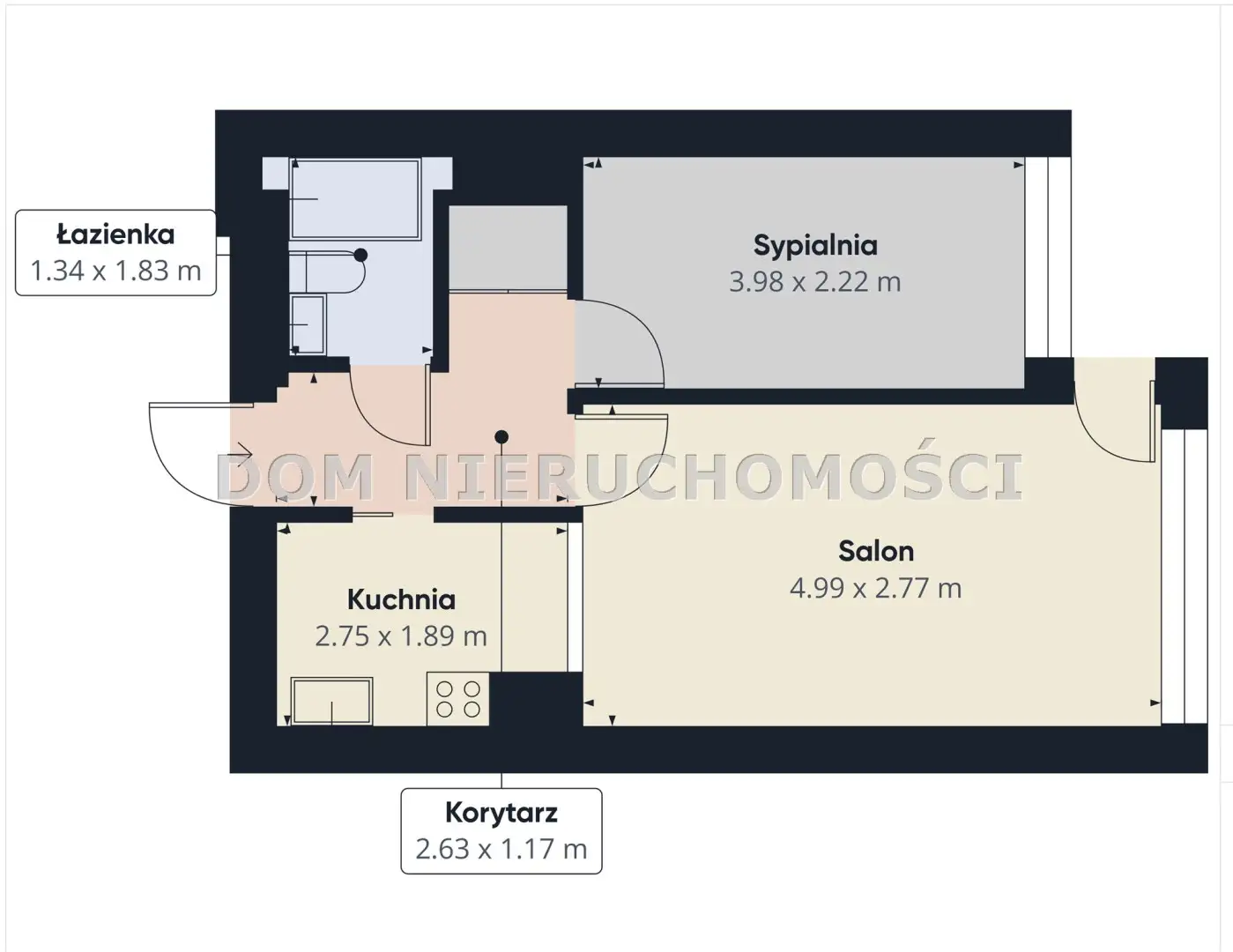 - półotwartej na salon kuchni (bez problemu można zrobić salon z aneksem kuchennym, co wizualnie powiększy przestrzeń),